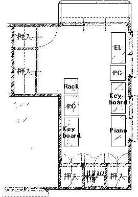 部屋をそのように動かし始めた。実は図面では分かりにくいが電子オルガンとピアノの間の自分のPCラックがギリギリ隙間ナシなので熱が怖い。。。