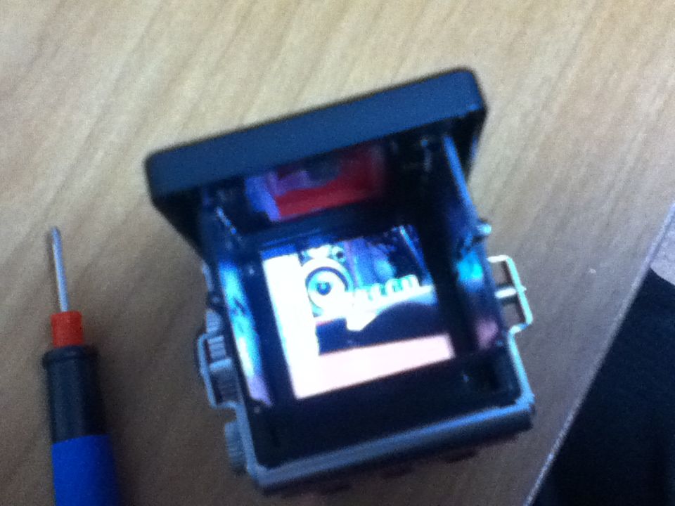 基板を一枚ずつ外し,これまた大変なファインビュー用の小型TFT液晶パネルをゆっくりとスライドさせて丁寧に外す.