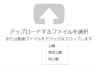 通常は"公開"が選ばれておりそのままアップロードすると処理後は一般公開されてしまう.この"公開"のドロップボックスは以下の3択から選べる.