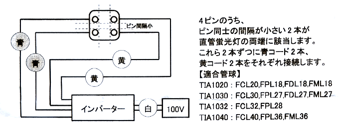 スターター形ではグローも必要な為,配線が少し複雑だがインバータ形では電源スイッチと蛍光灯の間にインバータを挟むだけ.