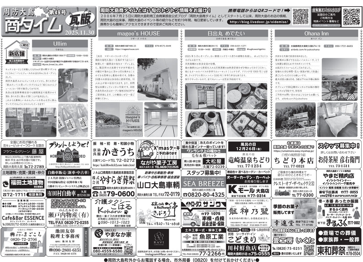 令和7年11月30日の朝刊で、周防大島商タイム瓦版第49号を