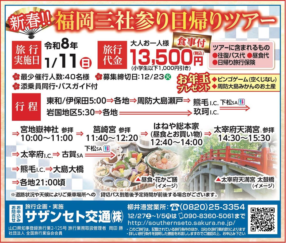 サザンセト交通「新春福岡三社参りツアー」のお知らせ