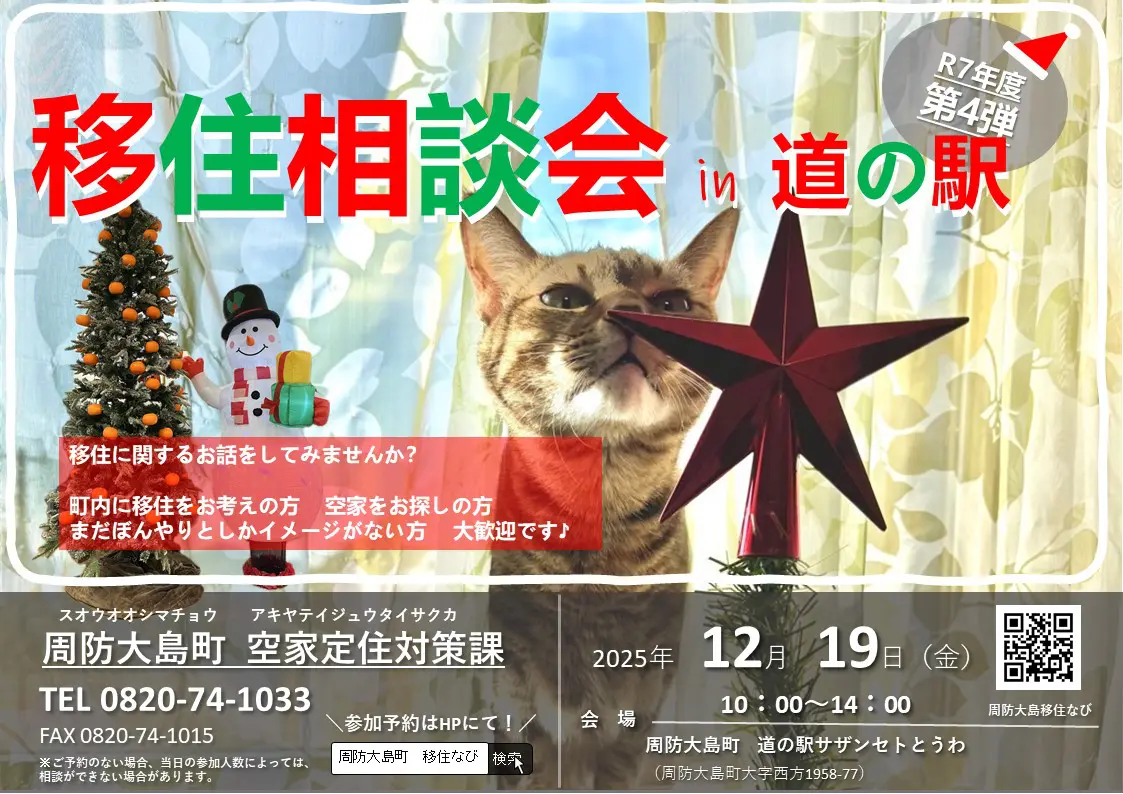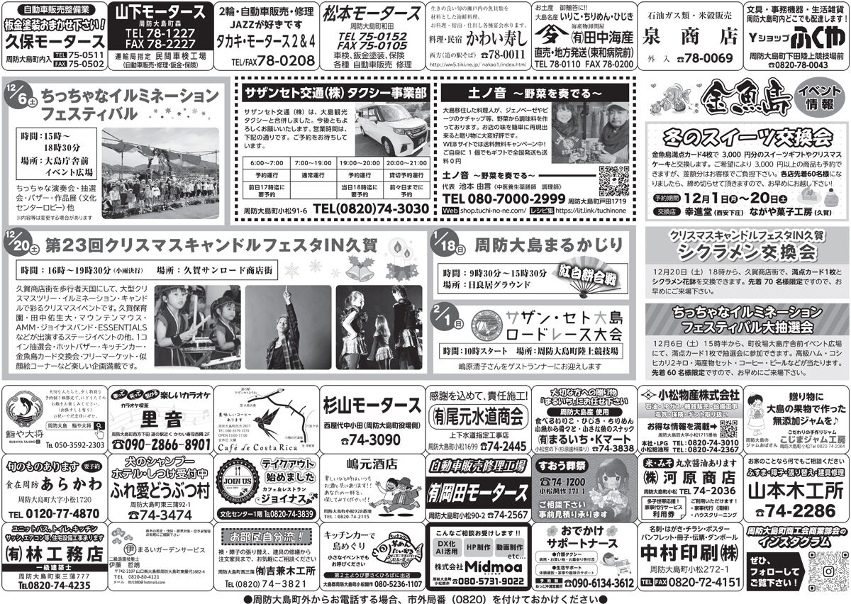 周防大島町商工会大島支所では、令和7年12月6日(土)15時から