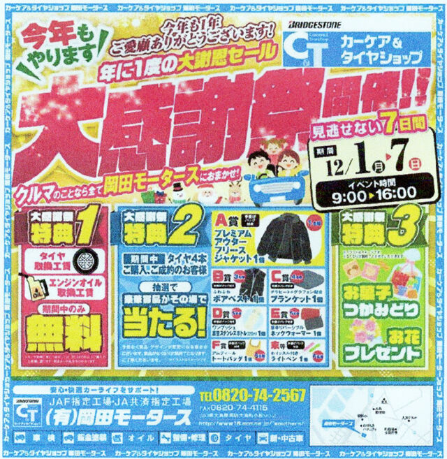 カーケア&タイヤショップ岡田モータース「大感謝祭」