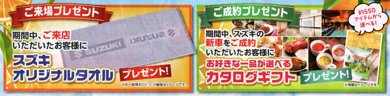 また、スズキの新車ご成約頂いた方には、ご成約特典もあります!