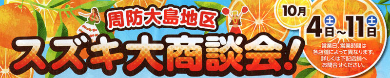 周防大島町内のSUZUKI販売店では、10月4日(土)〜11日(土)まで