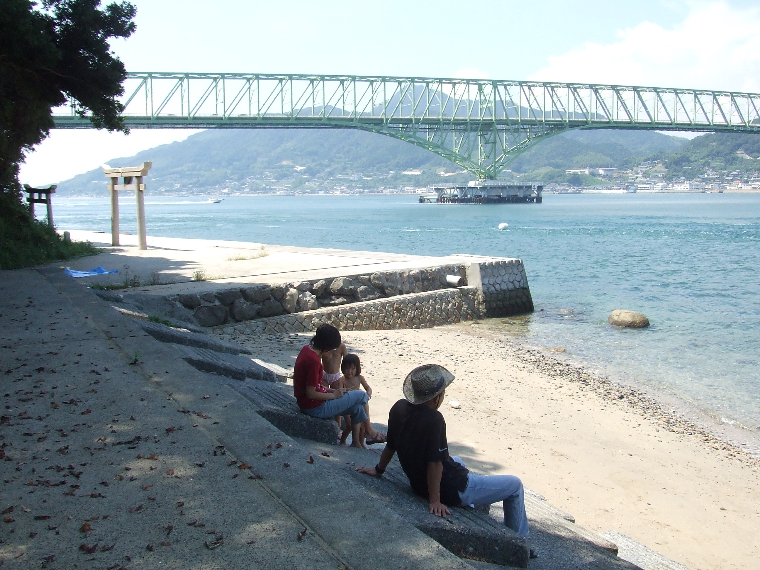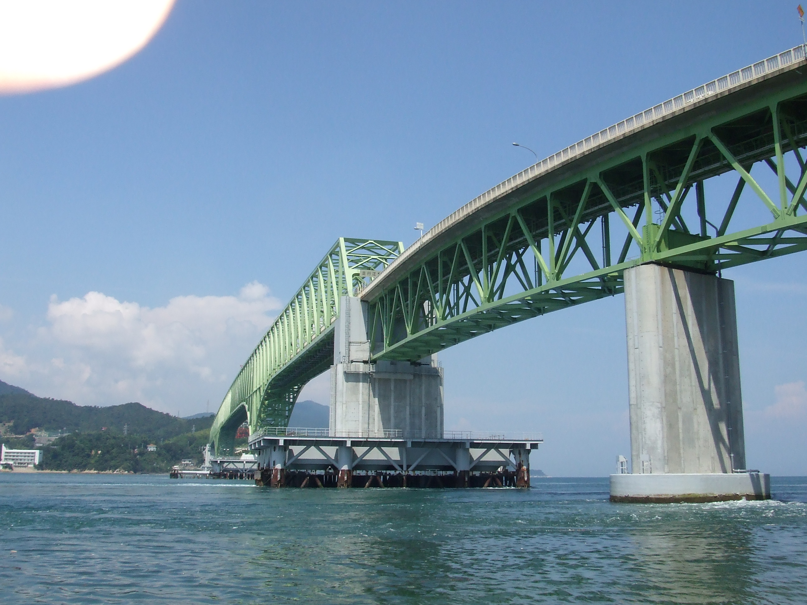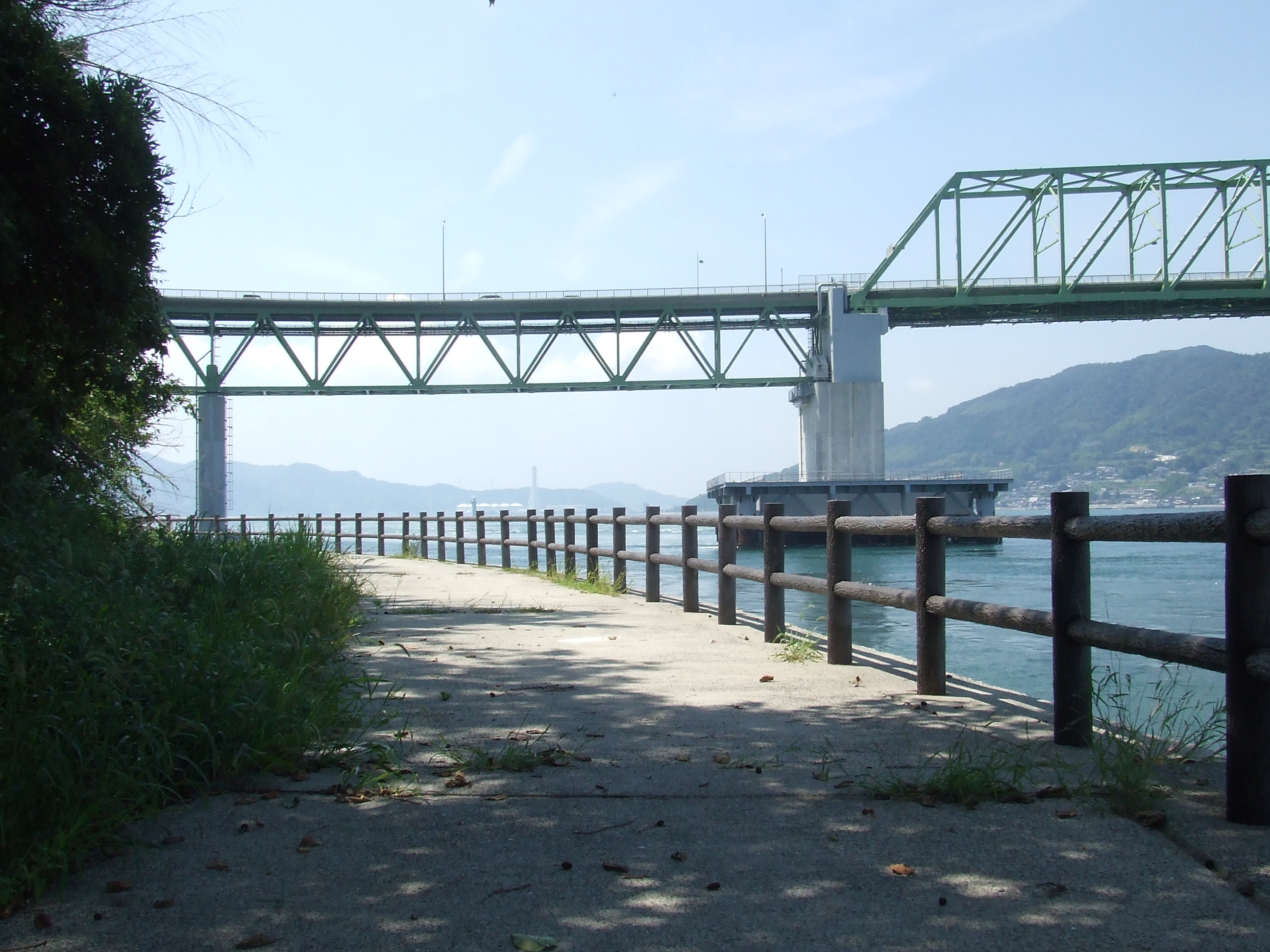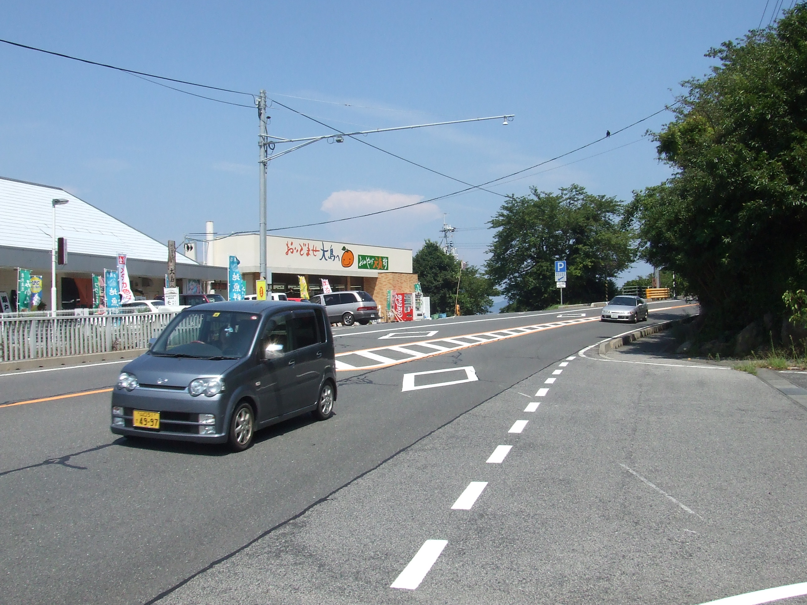 車窓からポプラ大島大橋を渡り、右折後約1km