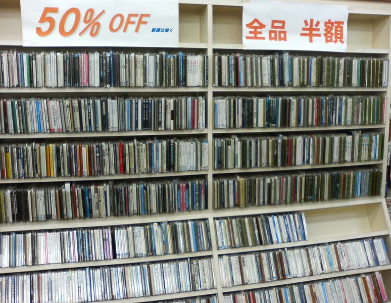 約2000枚の在庫全品を50%OFFで販売中です。あなたの欲しかったあのアルバムやまだ聞いたことのない名作などさがしに来て下さい。