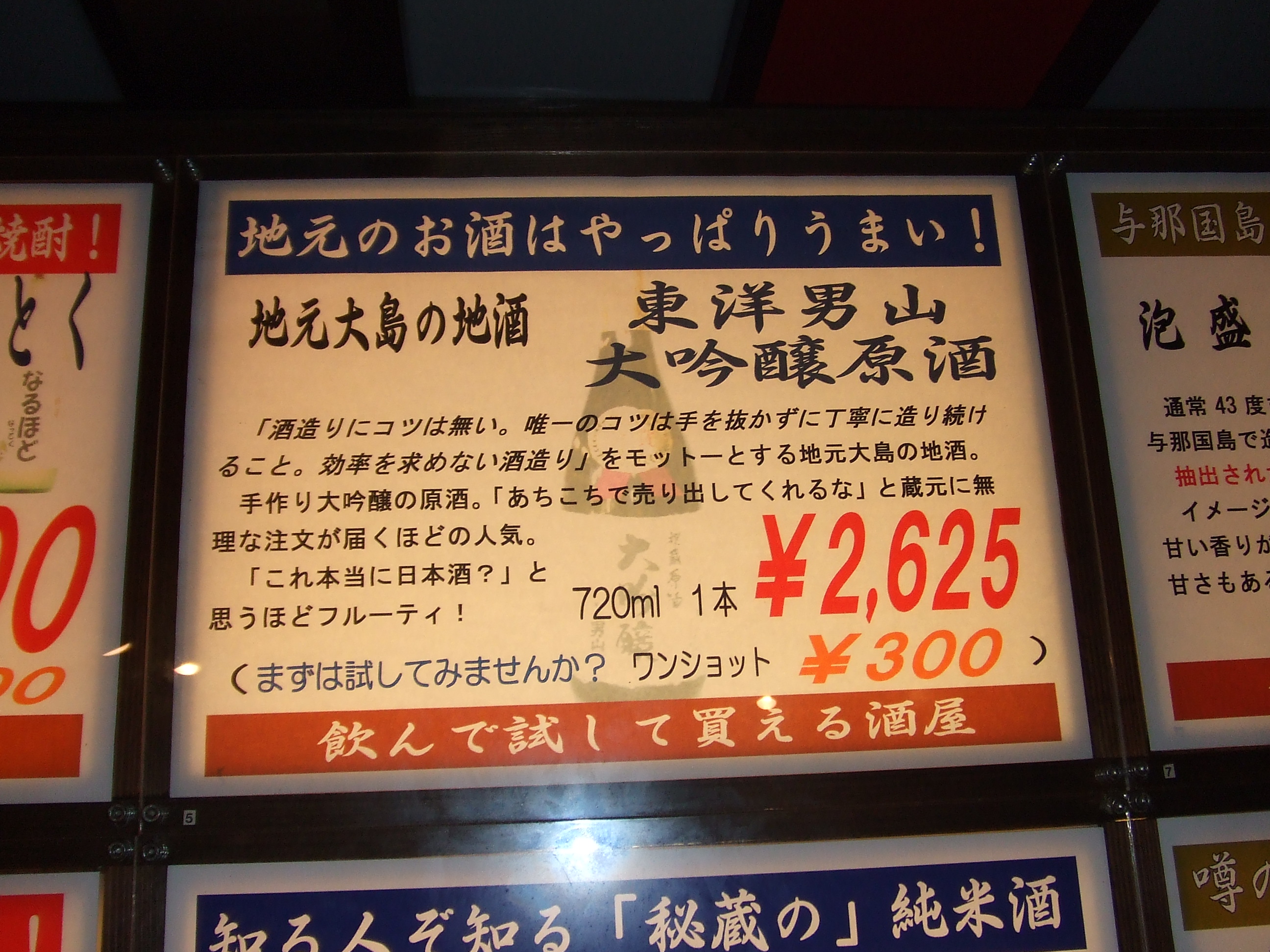 先日のちょいのみでも紹介しました大島の地酒 男山がカップで販売されています