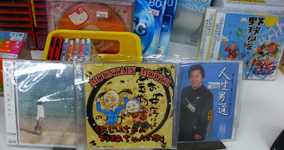 久賀出身、演歌の高橋イサム、大人気の兄妹デュオマウンテンマウスの他、先日プロモーションに来られた白鳥ちあきさんのデビューCDもあります。