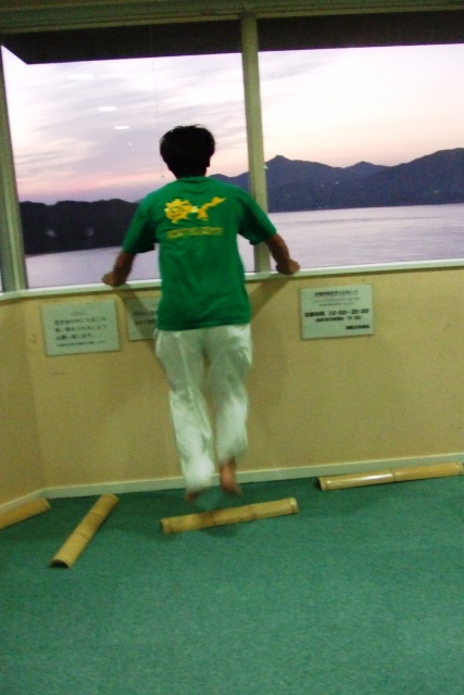 1号師匠、裏2号師匠と共に 大島文化センター内の