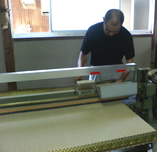 わずかな空気すらも入らないように、重ねるには熟練した技術が必要です。
