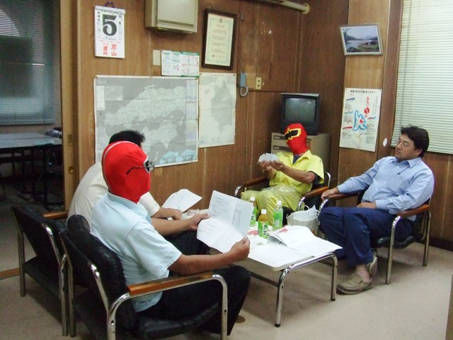歳末大売出しに向けて真剣に議論を交わす 周防大島町商工会商業部会 大島支所メンバー RED3号師匠(商業部会長)、私(2号)、裏2号、大島支所長