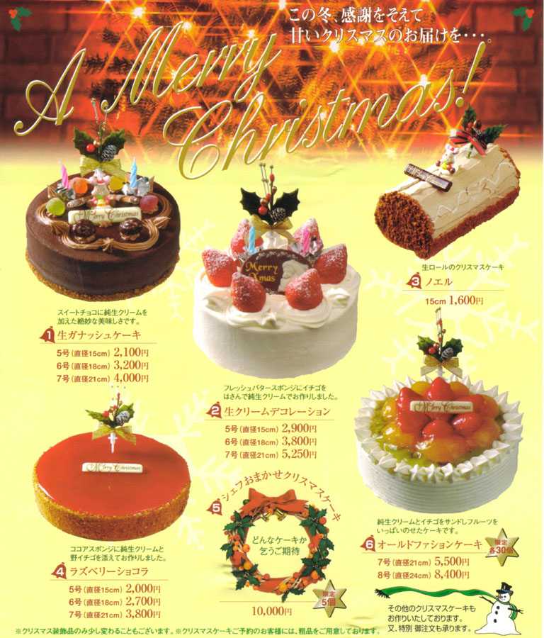 クリスマスケーキ予約受付スタート ながや菓子工房
