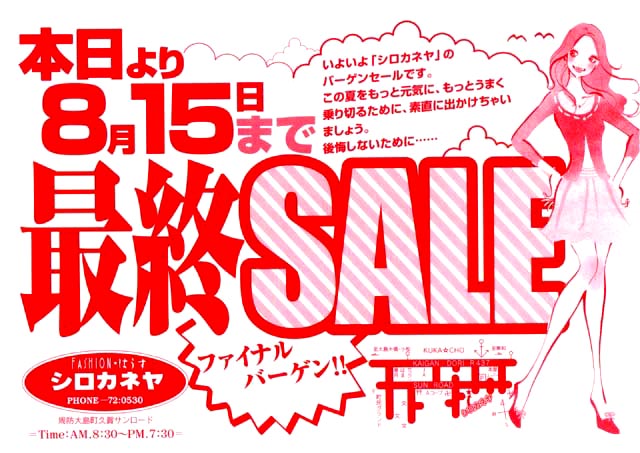 また、夏物ファッション衣料を大幅値下げしていますよ