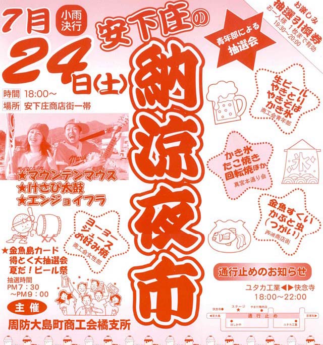 7月31日(土)18時より、周防大島町小松商店街〜屋代口にて開催します。