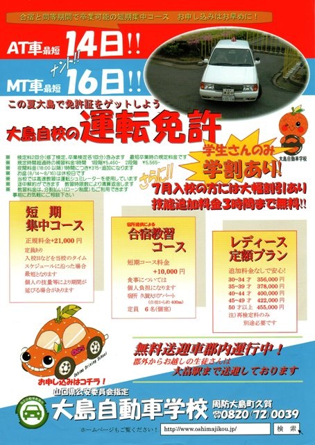 自然いっぱい、海のきれいな周防大島で運転免許を取りませんか?