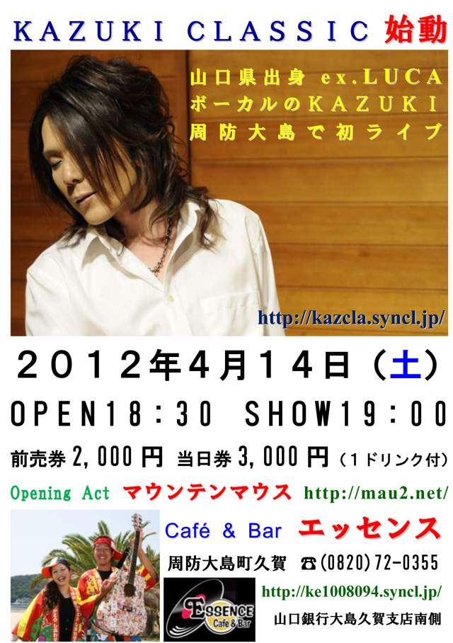 KAZUKIは、山口県出身で、1999年LUCAという5人組バンドでメジャーデビュー
