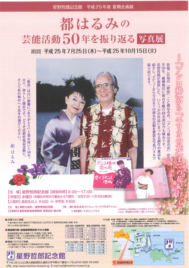 星野哲郎記念館では、「アンコ椿は恋の花」で、デビューして芸能活動50年を迎える