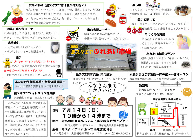 周防大島町役場橘総合支所奥にある橘漁協管理地にて開催します。