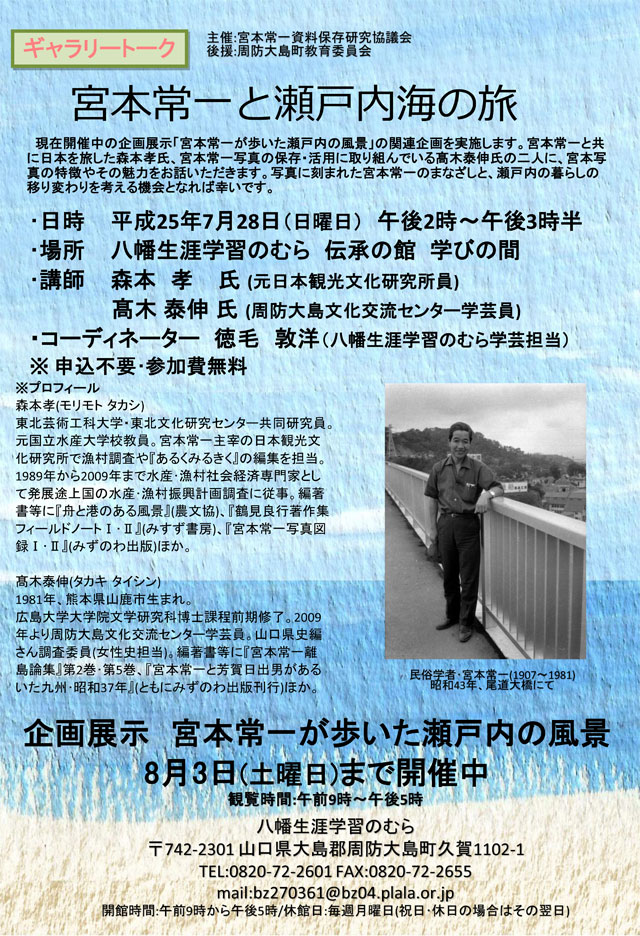 只今「宮本常一が歩いた瀬戸内の風景」と題した