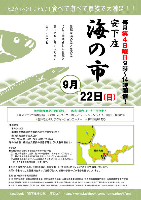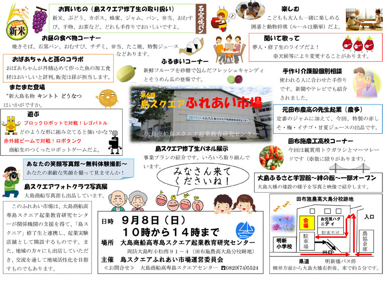 9月8日(日)10時〜14時まで、田布施農業大島分校跡地の