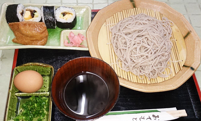 日曜日・祝日限定で、助六寿司が付く延命そばセットを紹介します。