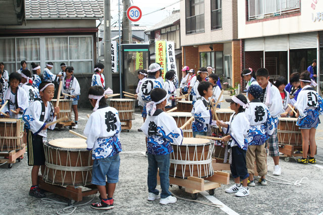 まつり当日、引山太鼓保存会メンバーは、街中を練り歩いて