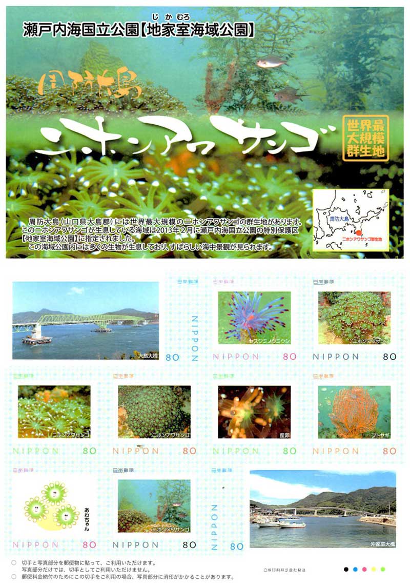 アワサンゴやウミウシのほか、大島大橋、沖家室大橋などの写真を使った