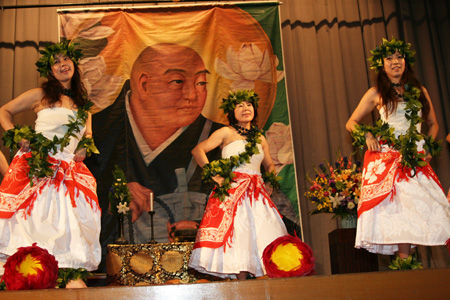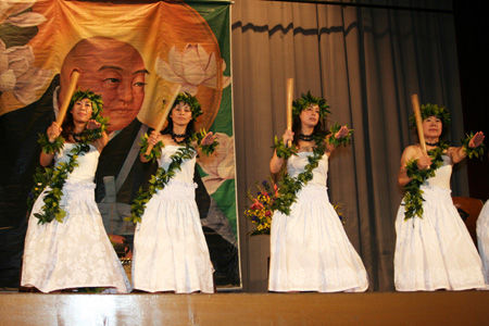 美しいフラの披露に、満員となったホールの壇信徒さんから、