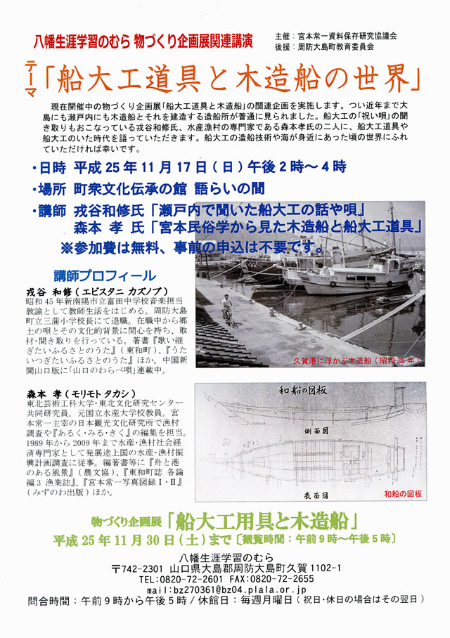 物づくり企画展「船大工道具と木造船の世界」関連講演会IN八幡生涯学習のむら