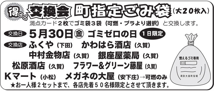 交換日は、 5月30日金曜日(ゴミゼロ)1日限定です。