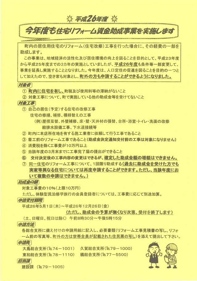 平成26年度住宅リフォーム資金助成事業のお知らせ