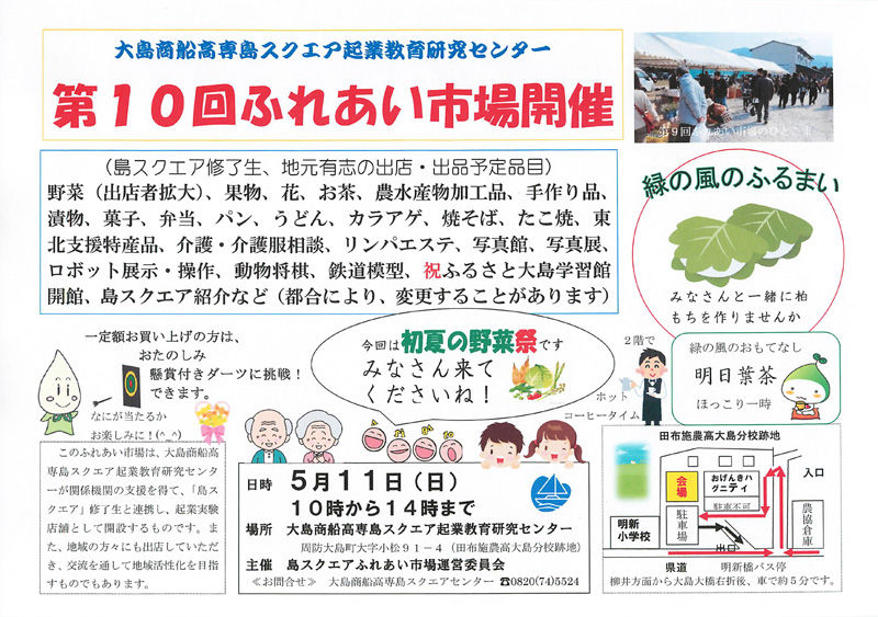 5月11日(日)10時〜14時まで、田布施農業大島分校跡地の