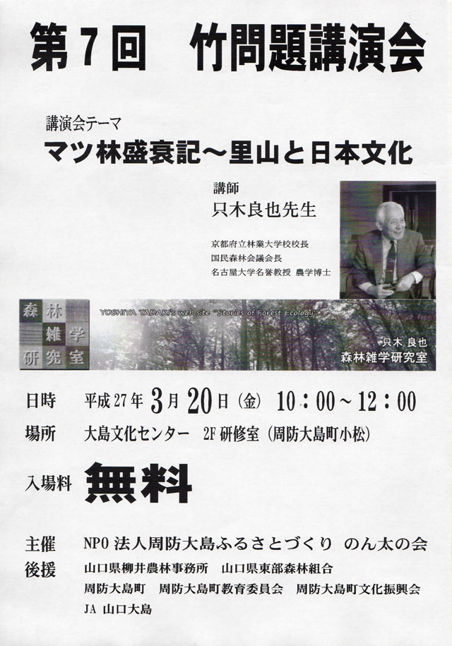 「マツ林盛衰記〜里山と日本文化」というテーマでご講演して頂きます。
