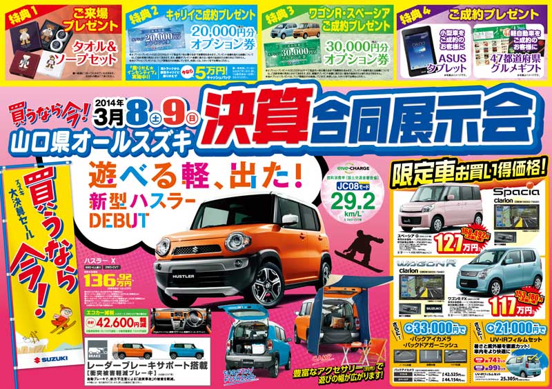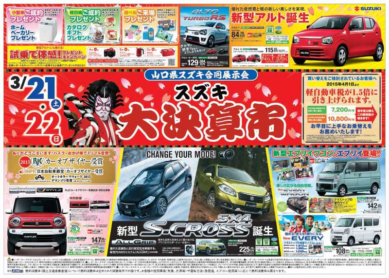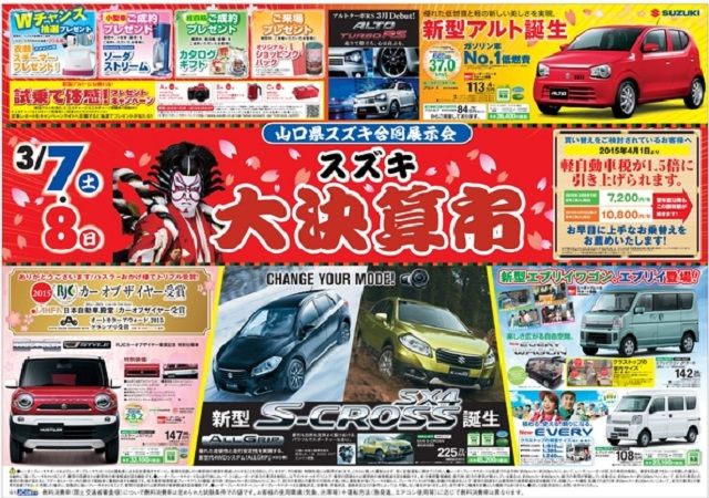 新型S−CROSSや新型アルトをぜひご覧下さい。