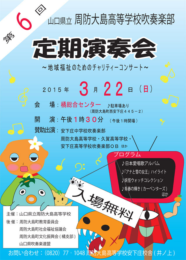 その他、金魚島カードイベント情報や周防大島高校吹奏楽部定期演奏会