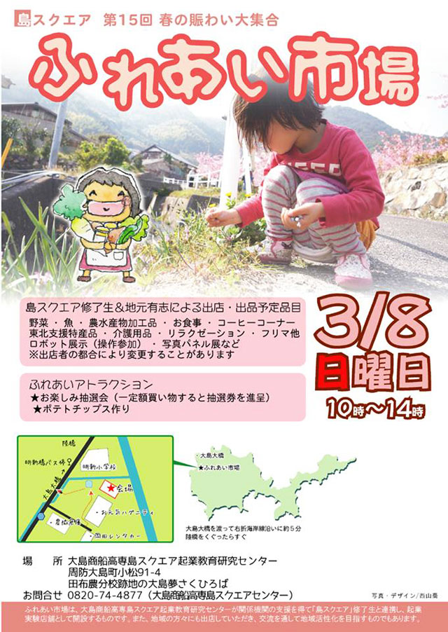 3月8日(日)10時〜14時まで、田布施農業大島分校跡地の