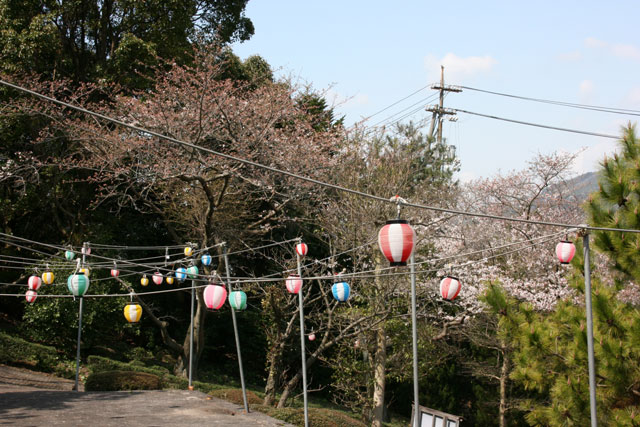 毎年、電飾ちょうちんで、4月中旬までライトアップしています。