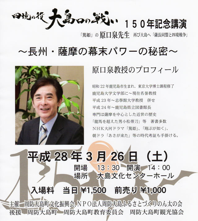 「長州・薩摩の幕末パワーの秘密」というテーマでお話しして頂きます。