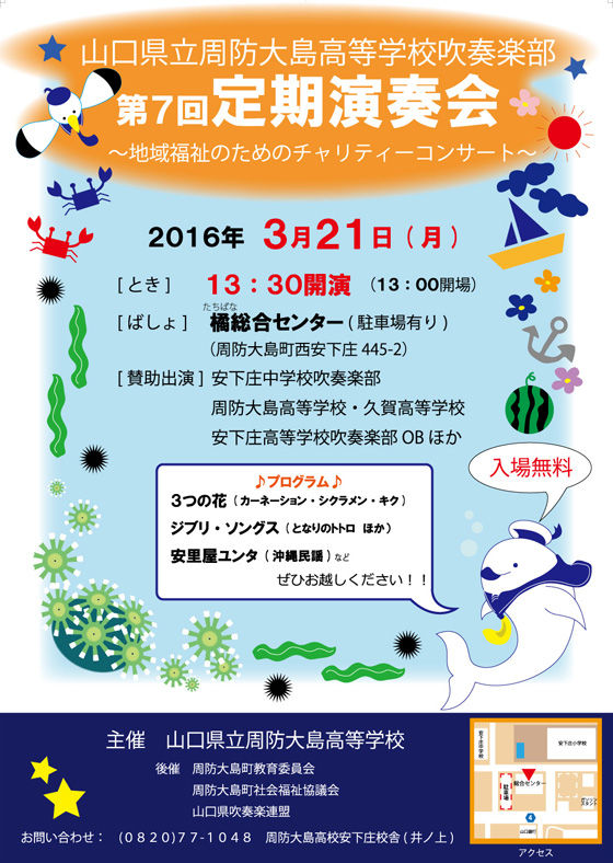 その他、金魚島カードイベント情報や周防大島高校吹奏楽部第7回定期演奏会