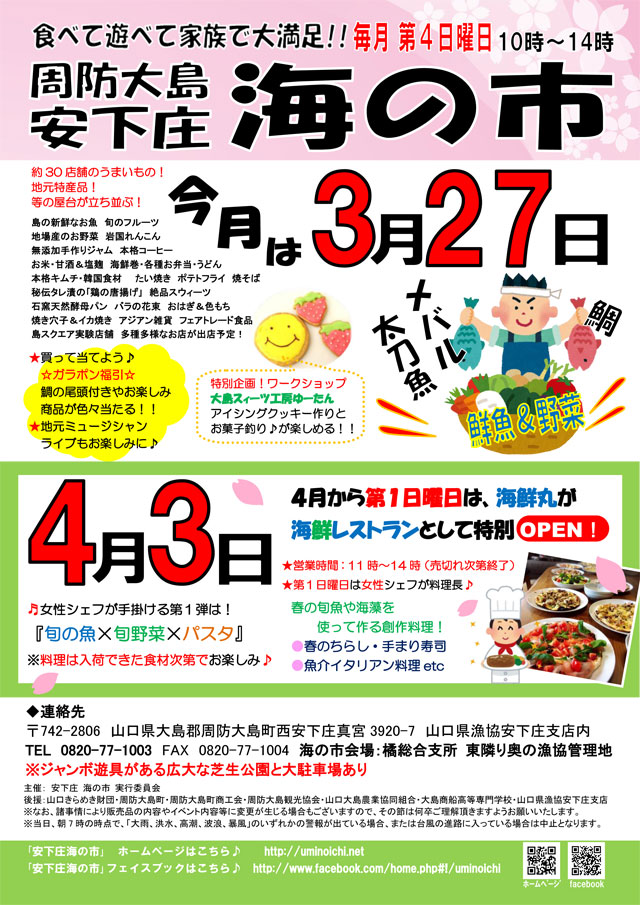 安下庄海の市では、新鮮な海の幸や旬の野菜などを販売致します。