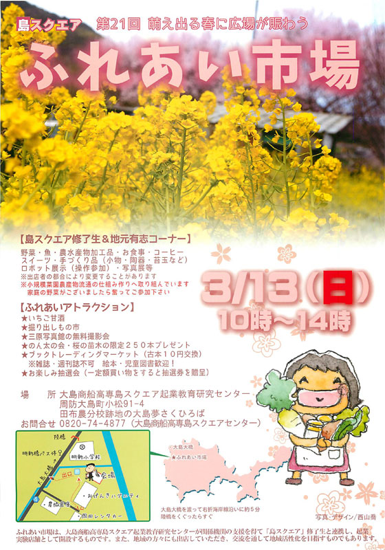 3月13日(日)10時〜14時まで、田布施農業大島分校跡地の