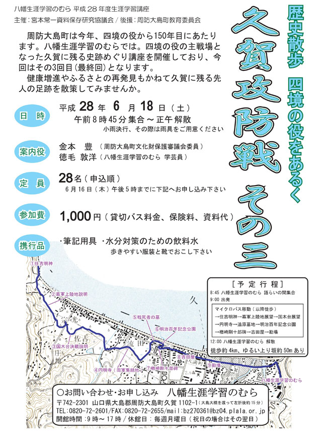 八幡生涯学習のむら「歴史散歩」のお知らせ