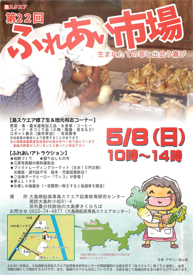 5月8日(日)10時〜14時まで、田布施農業大島分校跡地の