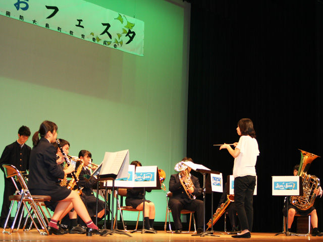 ホールでは、音楽会が開催されました。大島商船高専吹奏楽部の演奏でスタート