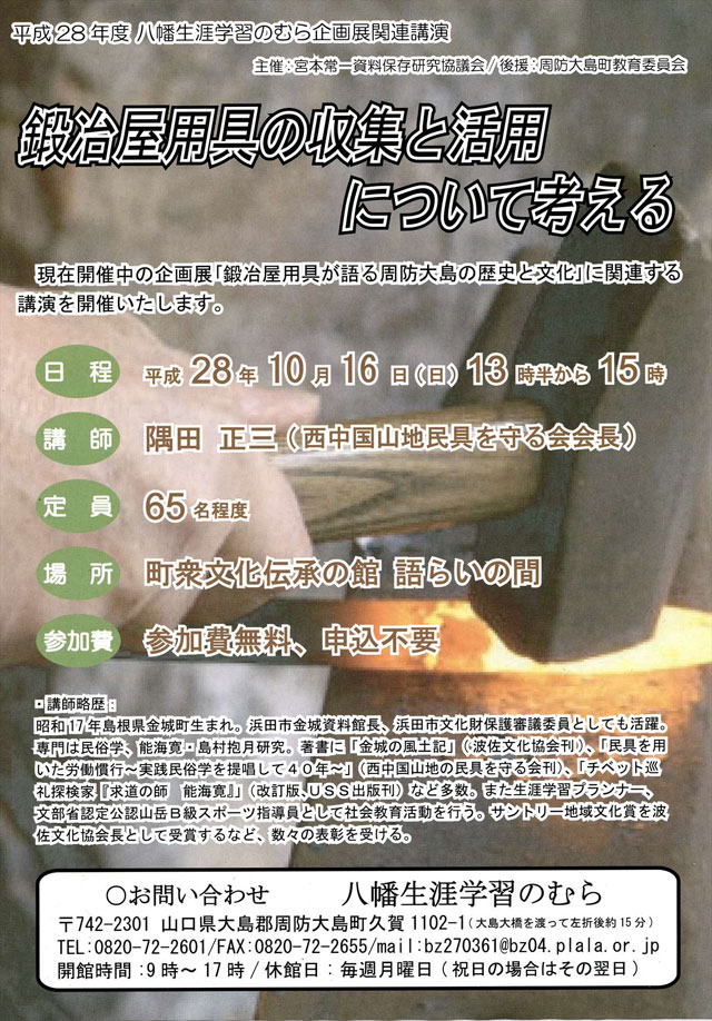 八幡生涯学習のむら講演会「鍛冶屋用具の収集と活用について考える」のお知らせ