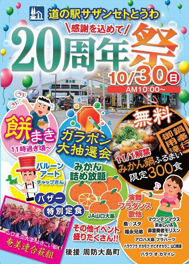「道の駅サザンセトとうわ20周年祭」のお知らせ