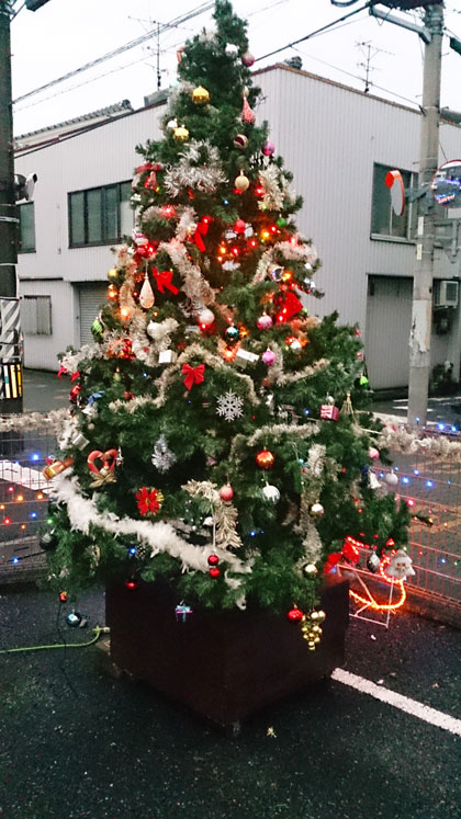 久賀保育園駐車場に今年も大型クリスマスツリーを製作しました。