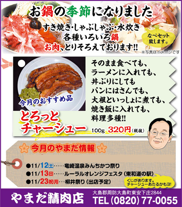 島の肉屋やまだの美味しいコロッケや手作りチャーシューなどもご一緒にどうぞ!